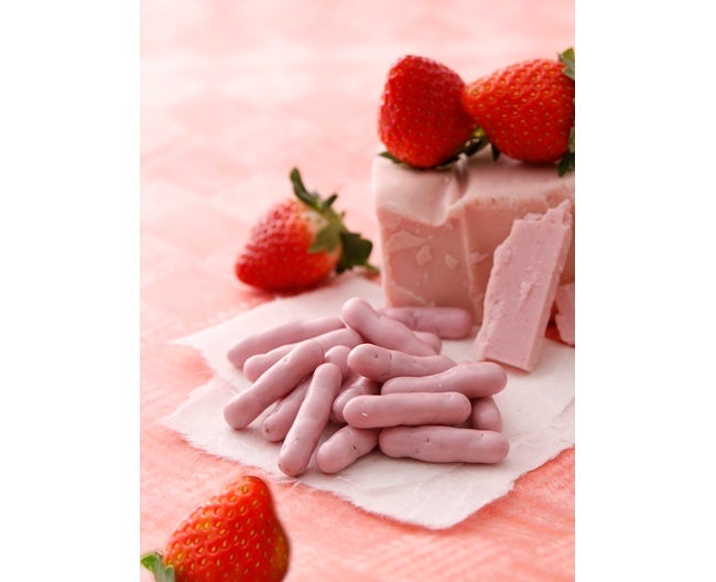 甘酸っぱいイチゴ風味の味わいのチョコレートを、かりんとうに丁寧に塗り重ねました。