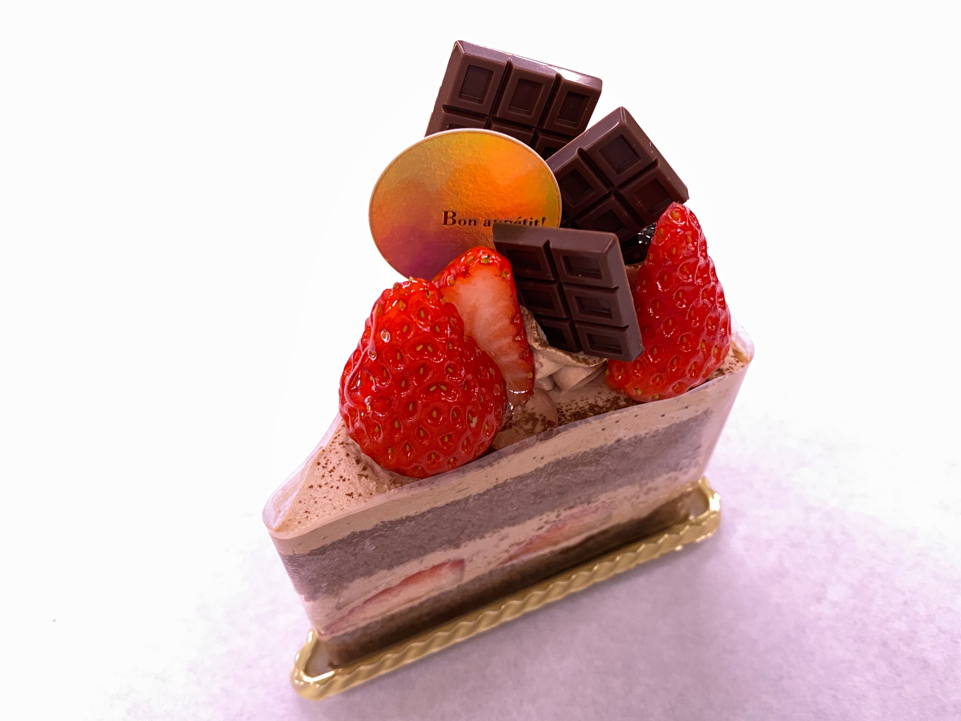 定番のショコラ・ファンに旬の紅ほっぺ苺を使用しました。今の時期だけの美味しさです。