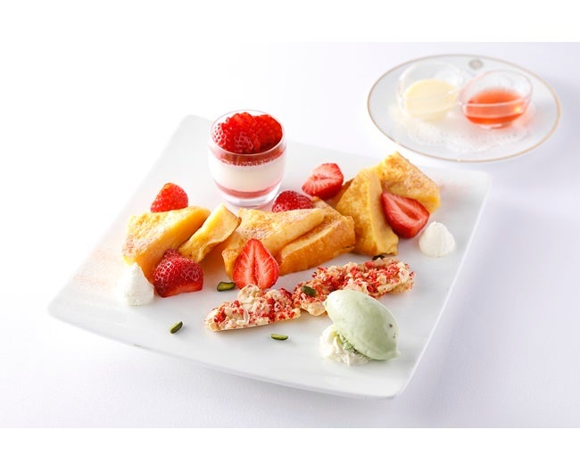 福岡県産の“あまおう”を使用したフレンチトーストです。甘酸っぱい苺と、ほんのり甘いフレンチトーストのマリアージュをお楽しみください。