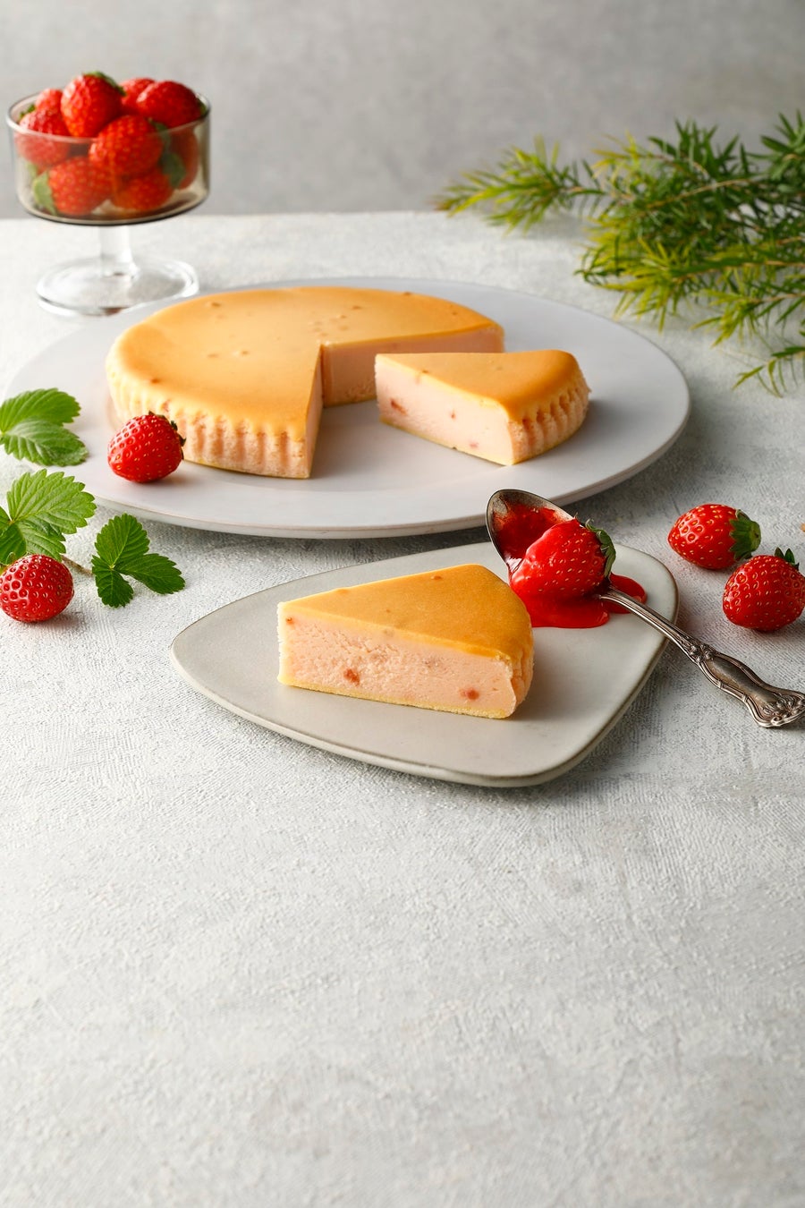 いちご餡をたっぷりと生地に練り込んだチーズケーキです。