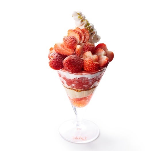 オレンジがさわやかに香るブリュレとほろ苦いカラメルソースを合わせた苺のパフェです。トップには甘酸っぱい苺の果肉に、優しい口当たりの苺マスカルポーネパルフェをトッピングしました。