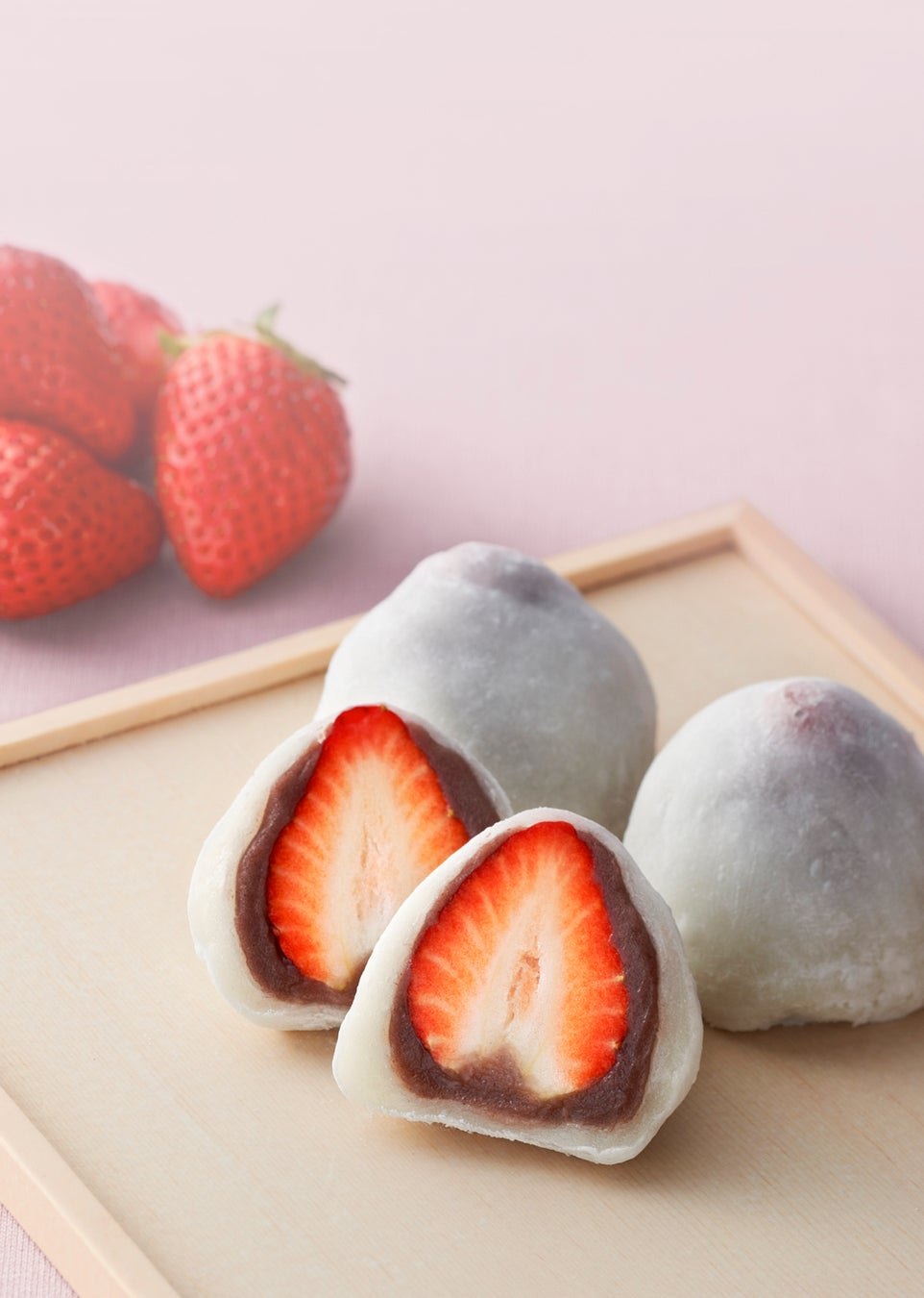 いちごを丸ごと小豆こしあんで包み、薄皮の生地で仕上げました。