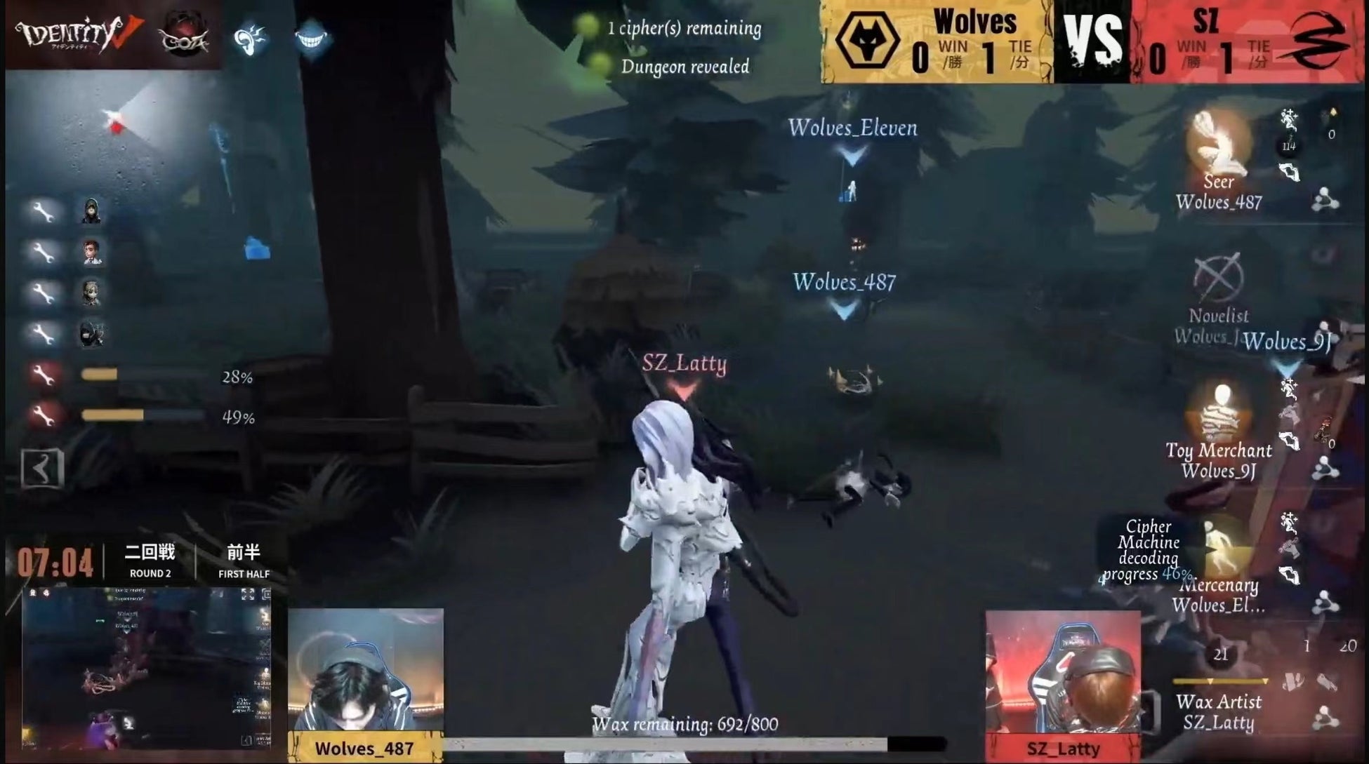 ZETAと同様に直接招待されたSZチームも、グループCに位置しています。昨年の秋季IVL大会チャンピオンであるWolvesチームも同じグループにいます。そして16日のWolvesとの対戦でも、SZは優れたパフォーマンスを見せ、戦術的な研究に基づき、1-0の差で勝利を収めました。SZのハンターであるLattyは、優れたゲーム理解とキャラクター戦略を示しました。特にWolves_ChoAiに対処するために蝋人形師の素晴らしいパフォーマンスで、4吊りを成功させました。その後、SZのサバイバーたちは、Shinamiの指導の下、Wolves_ChoAiの追撃を防ぐために祭司を選択し、3逃げして勝利を収めました。