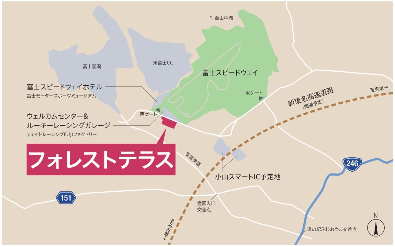 本施設は、2社が静岡県駿東郡小山町で協働して推進する再開発計画「富士モータースポーツフォレストプロジェクト」の一環として、トヨタ不動産が開発・運営します。「富士モータースポーツフォレスト」は、国際サーキット「富士スピードウェイ」を中心とした、モータースポーツや様々なモビリティ体験を楽しめる複合施設で、エリア全体が「新しい体験」や「発見」のある場所へと常に進化を続けています。