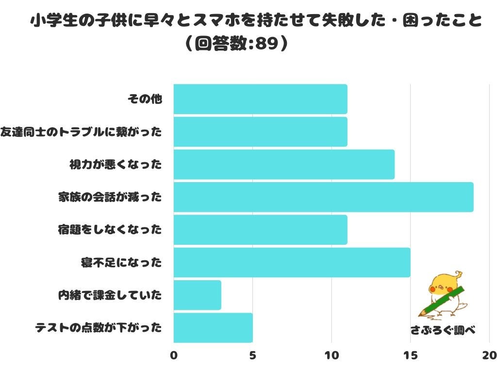 【調査レポート】小学生の子供に早々とスマホを持たせて失敗した・困ったことは?1位は「家族の会話が減った」という結果でした。