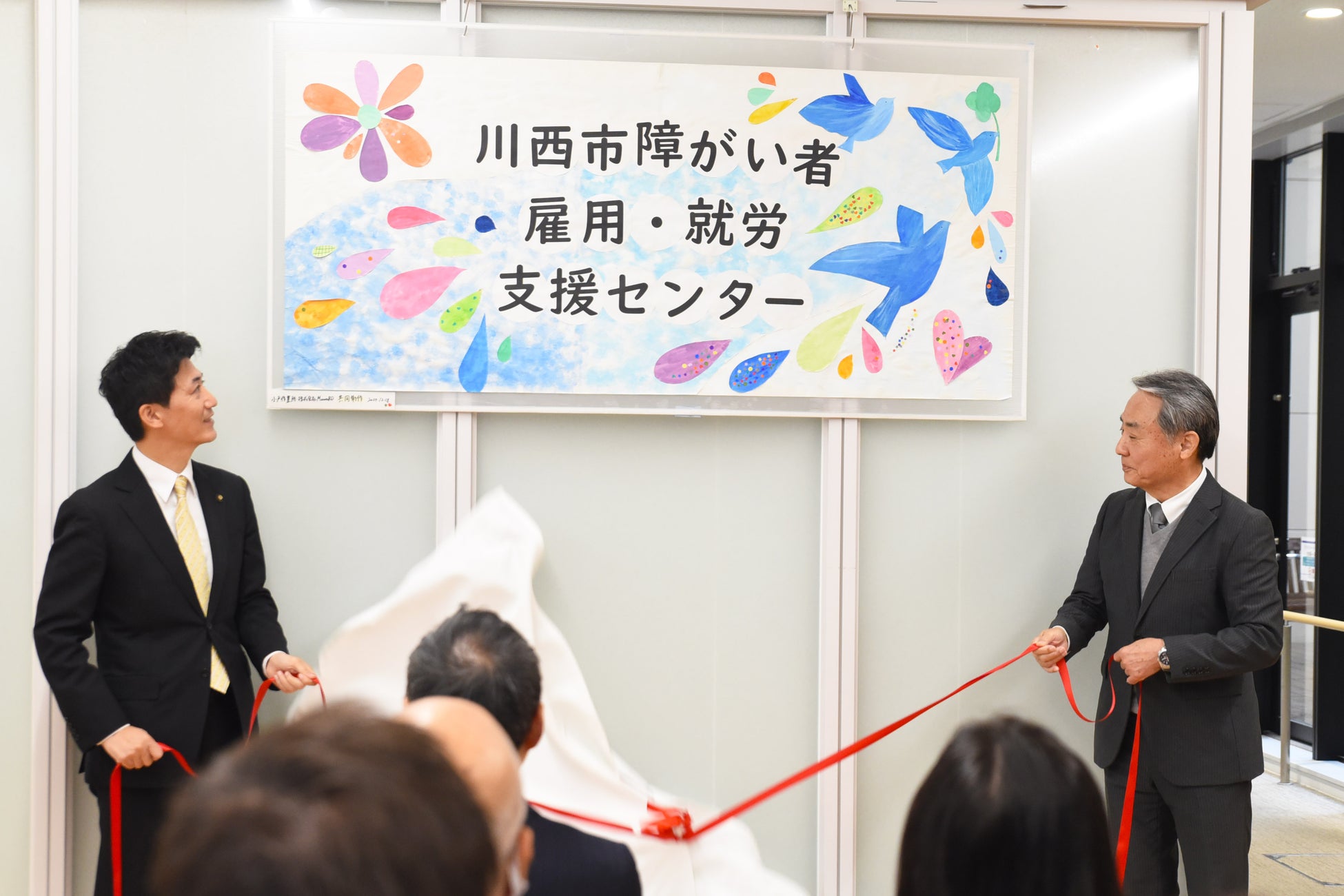 越田市長は「障がい者の皆さんに居場所と出番を作ることが私たちの使命だと思っている。今回、障がい者の雇用、就労についてなんとかしたいという思いが、受託いただいた社会福祉協議会をはじめ、さまざまな団体の皆さんの協力もあり、ようやく具体的な形としてスタートすることができた。このセンターが、障がい者ご自身やご家族のサポートにつながること、そして川西市の経済や地域の事業者の皆さんにとっても役に立つことを期待している。」とあいさつしました。