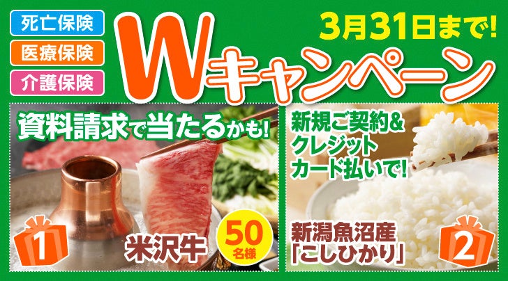 【SBIいきいき少短】死亡保険・医療保険・介護保険の資料請求で「米沢牛」が抽選で当たるキャンペーンを実施~クレジットカード払いの新規ご契約でもれなく「新潟魚沼産こしひかり」をプレゼント~