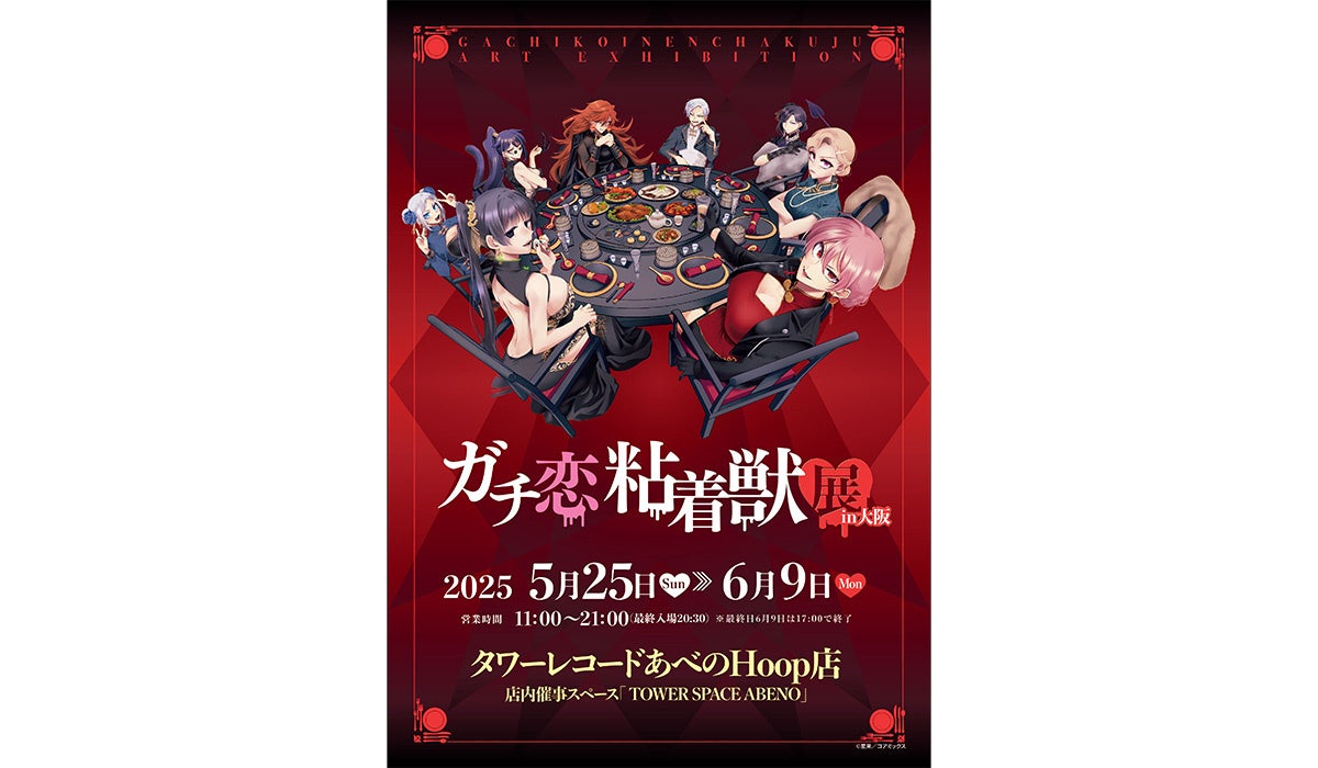 株式会社コアミックス(東京都武蔵野市)が発行する大人気漫画「ガチ恋粘着獣 〜ネット配信者の彼女になりたくて〜」(作者・星来) の原画展「ガチ恋粘着獣展」が2025年5月25日(日)より、タワーレコードあべのHoop店内催事スペース「 TOWER SPACE ABENO」にて開催されることが決定いたしました。