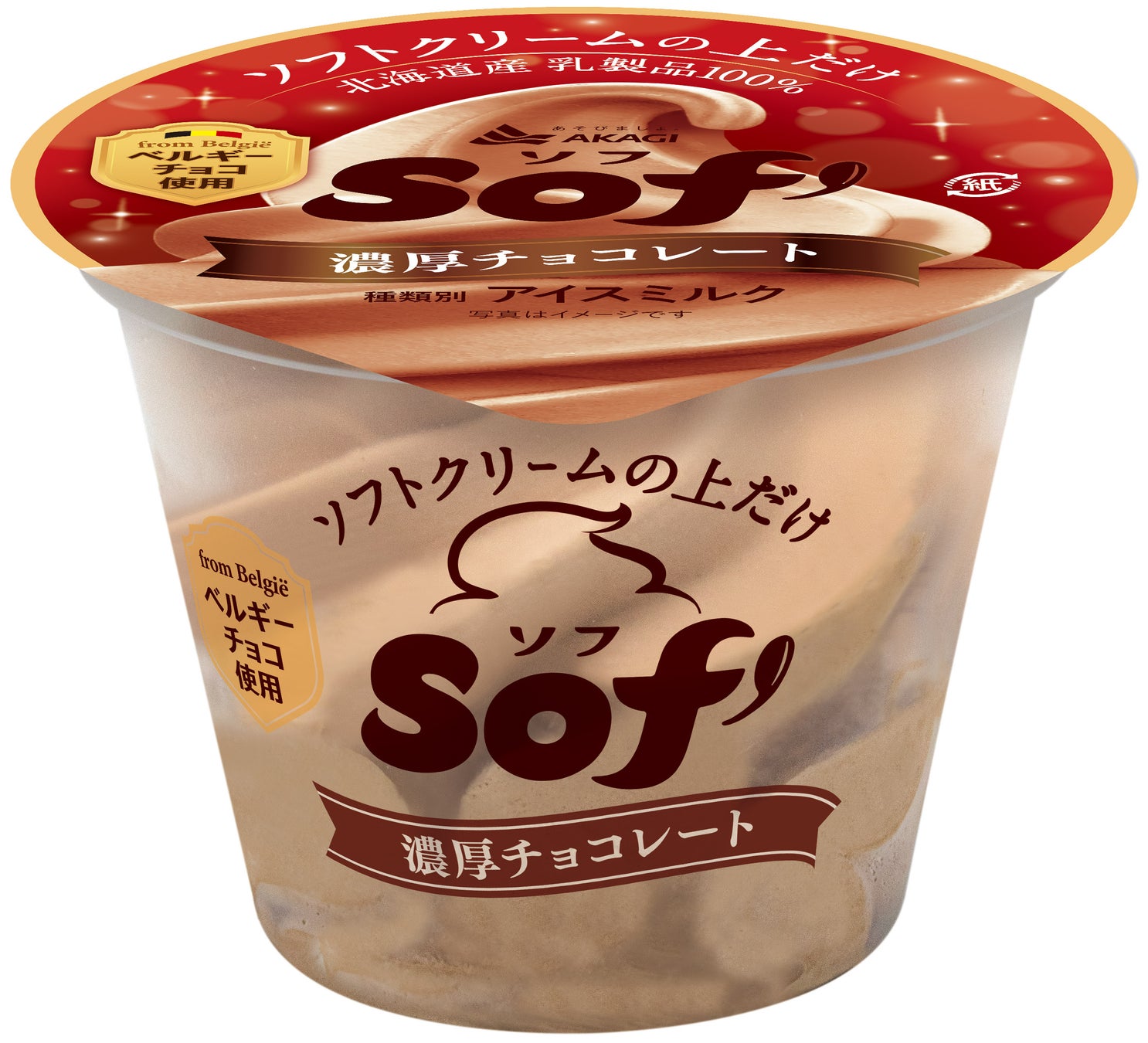「Sof’(ソフ)濃厚チョコレート」は、今回新たにベルギーチョコレートを入れることで、濃厚で本格的なチョコレートの味わいに仕上げております。乳製品は全て北海道産のものを使用しており、濃厚なチョコレートの味わいに加え、ミルクの味わいも楽しめる仕立てになっております。