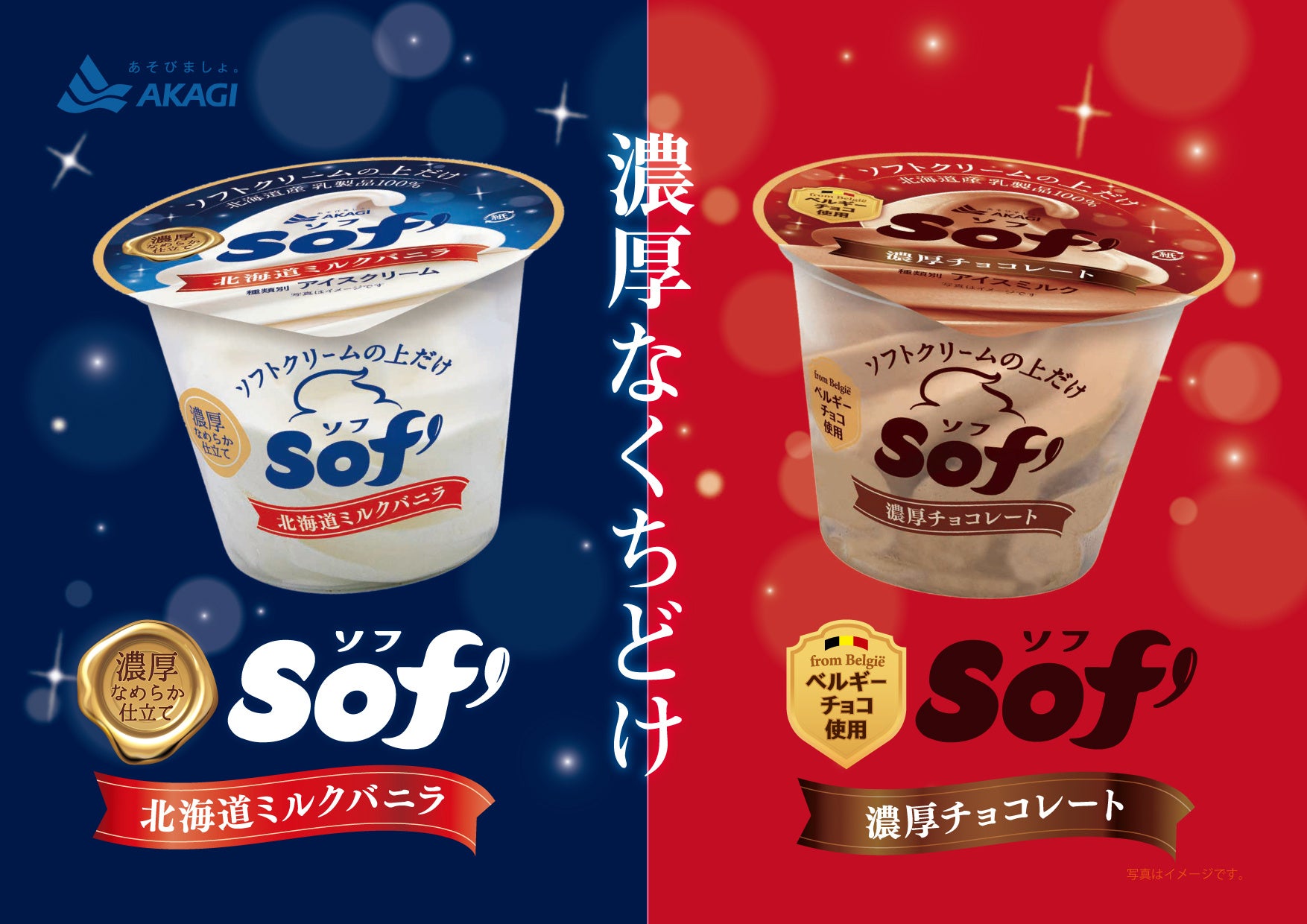 濃厚な味わいで秋冬にぴったりな「Sof’(ソフ)北海道ミルクバニラ、濃厚チョコレート」を、ぜひご賞味ください。
