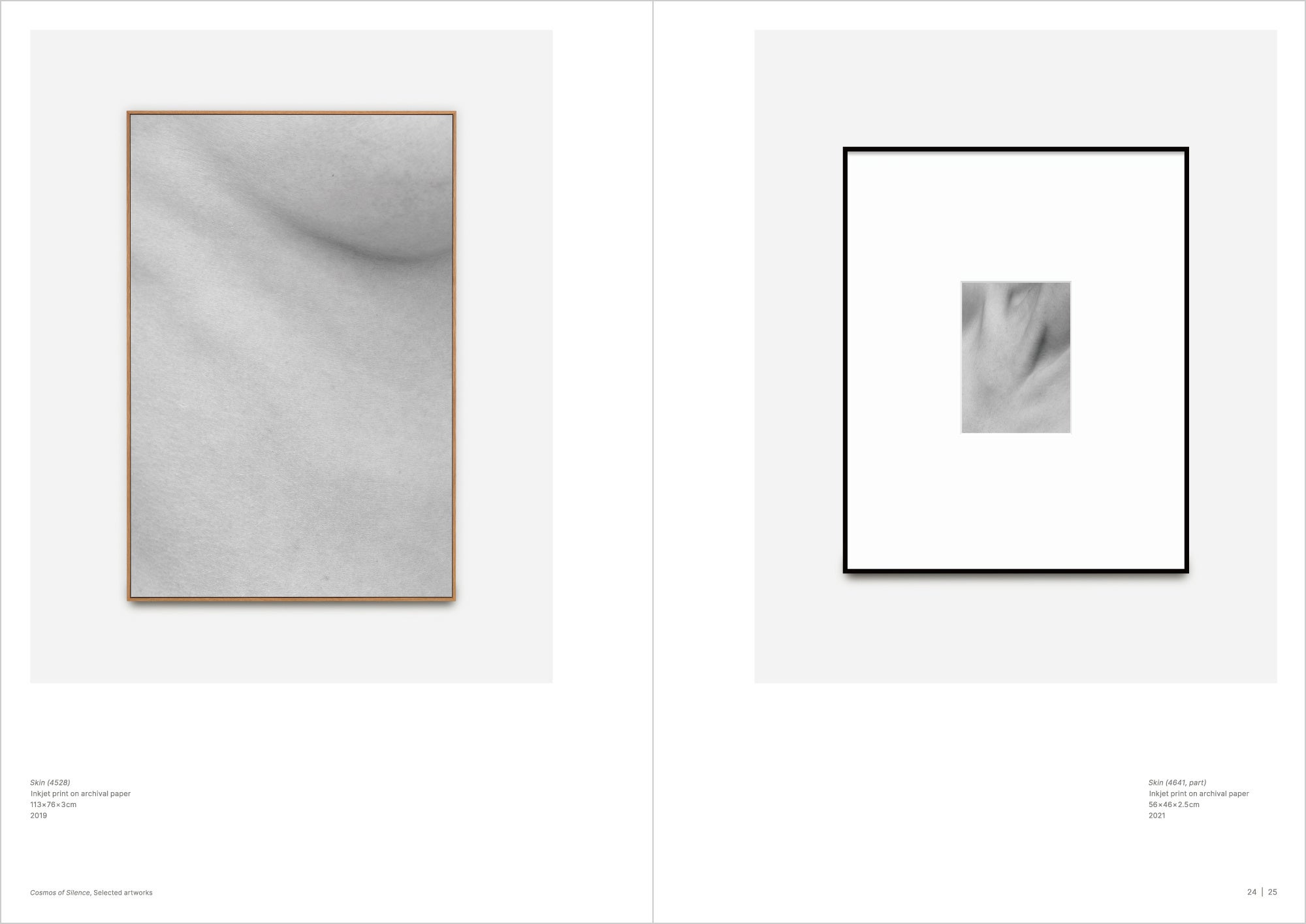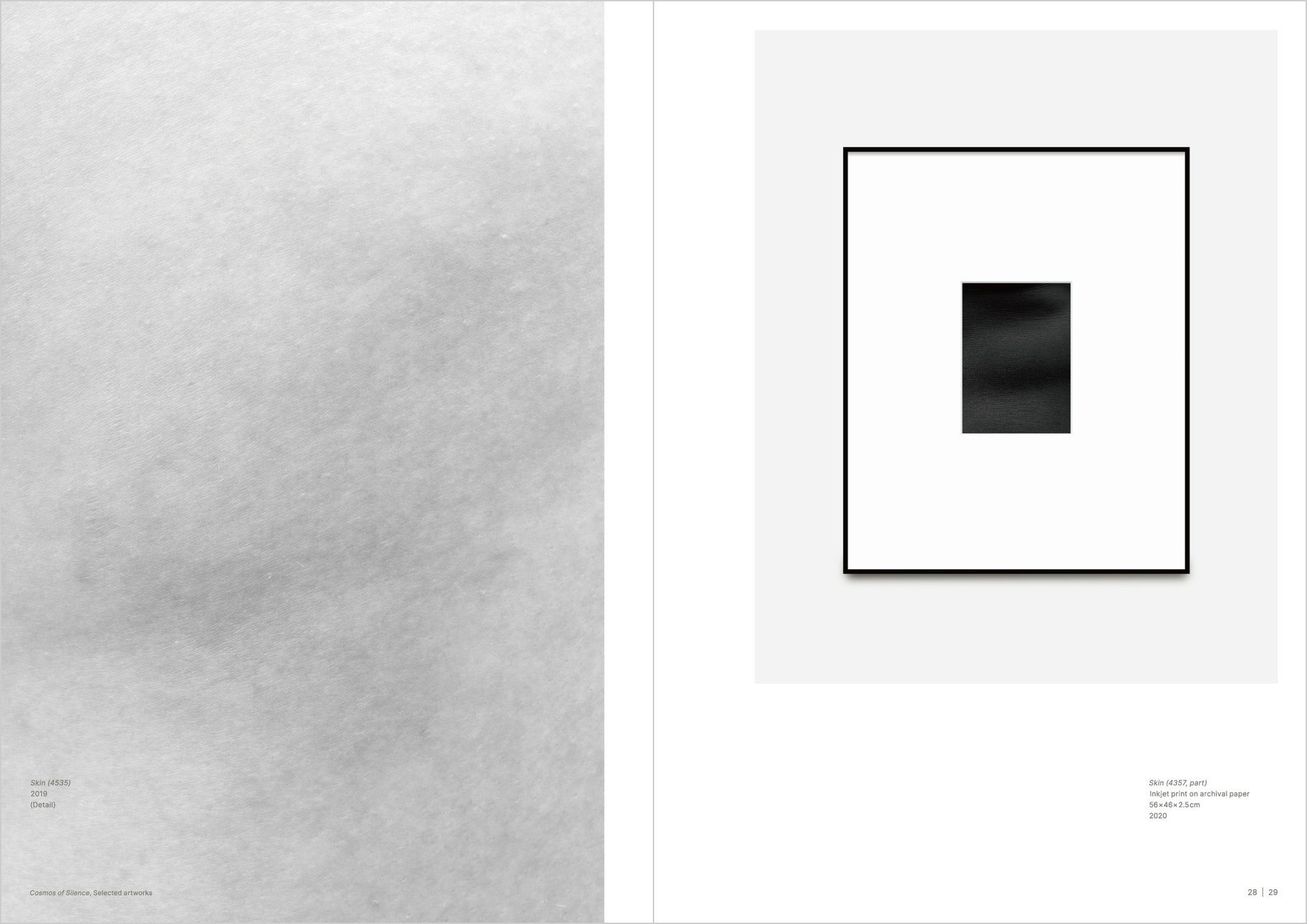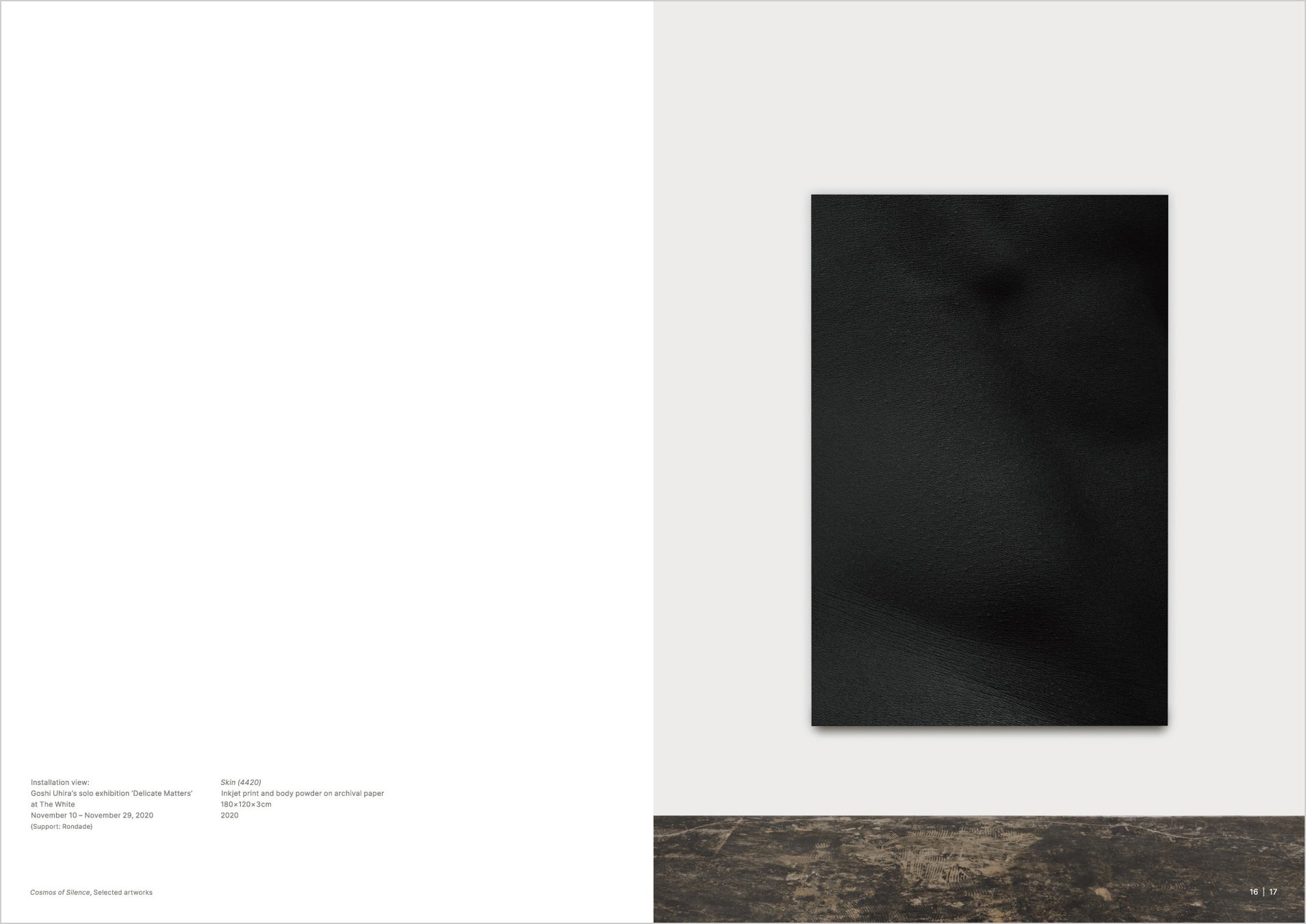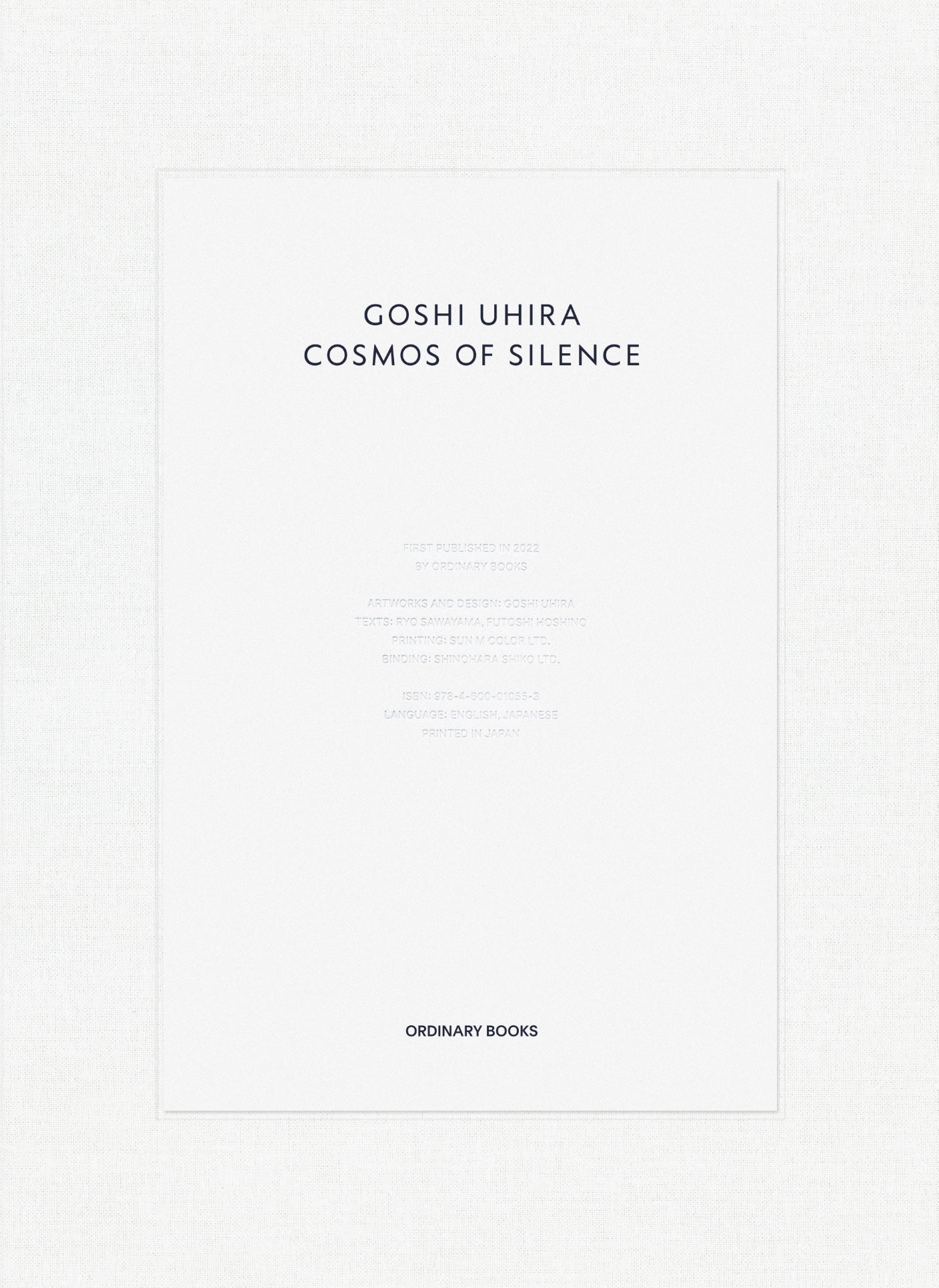 モノクロームを基調とする精緻かつ静謐な仕事で国際的に活躍の場をひろげる、気鋭の現代美術家・デザイナーの宇平剛史 (うひら・ごうし)。これまでのアートワークとデザインワークで構成された初の作品集『Cosmos of Silence』が、ORDINARY BOOKSより刊行されます。繊細で複雑な人肌のテクスチャーを印刷表現で提示する《Skin》シリーズをはじめ、海外ブランドや企業とのデザインワークを紹介。また生い立ちから、今後の展開を宇平自身が語ったインタビュー「静かで遅いイメージ──繊細な領域を知覚する」のほか、美術批評家の沢山遼による論考「肌理の倫理」、美学者の星野太による文章「愛の設計」を収録。巻末には、造本時に採用したさまざまな紙の仕様が掲載されています。