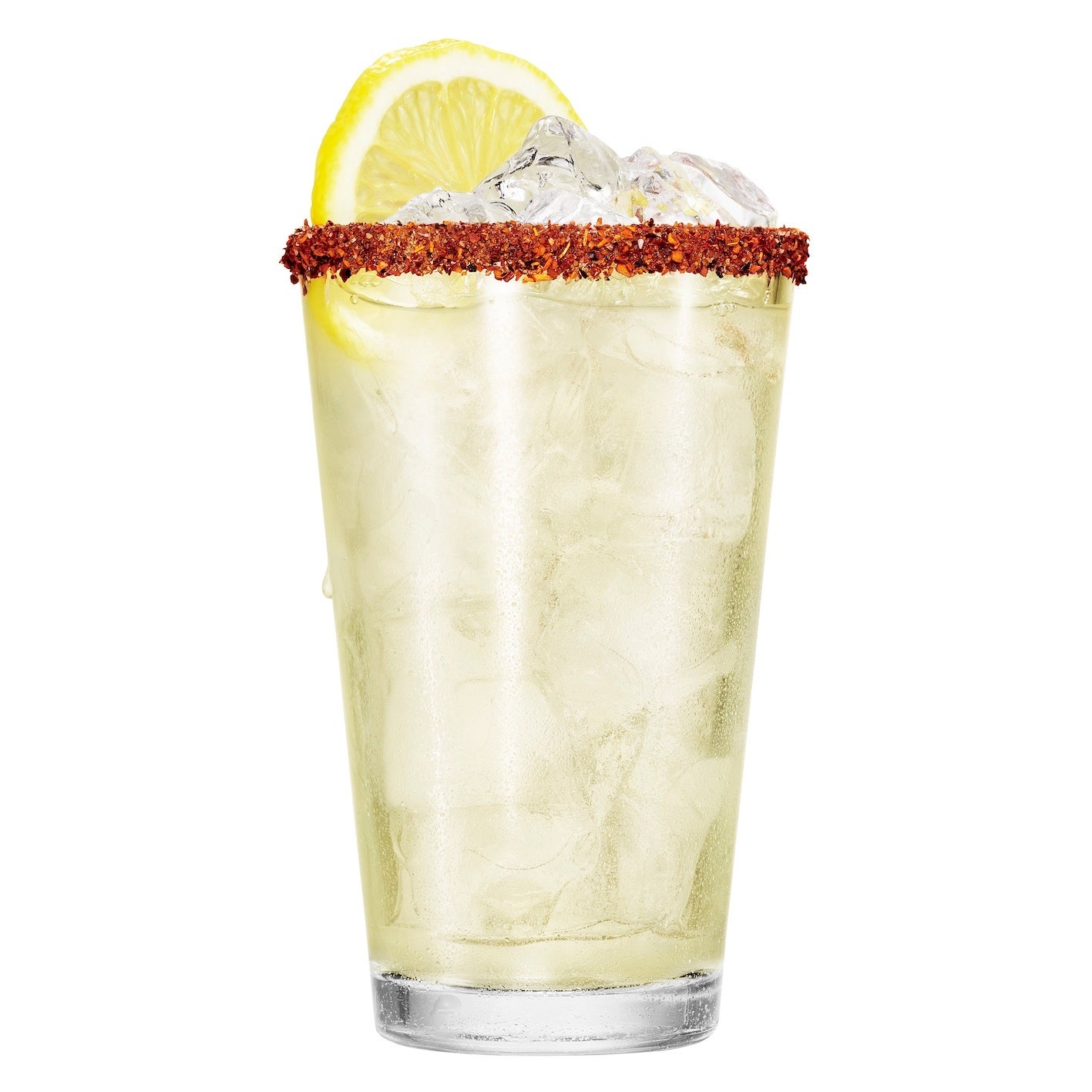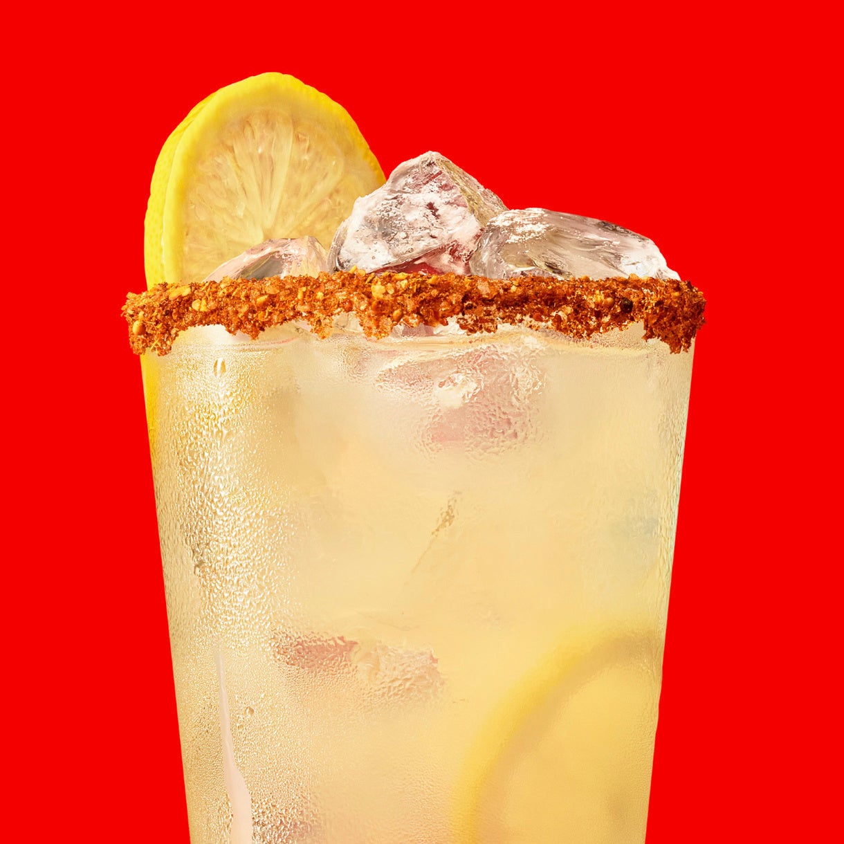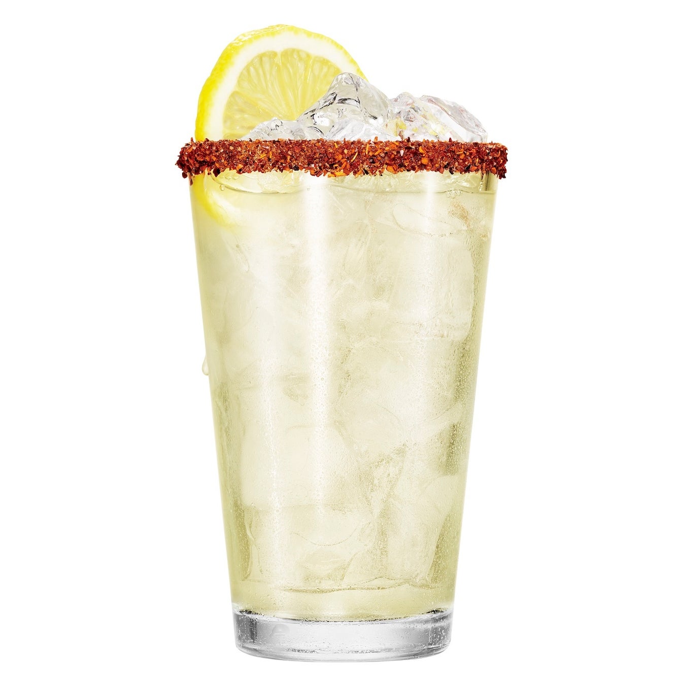 ハイボールグラスの縁にケイジャンシーズニングを付け、氷を入れます。全ての材料を加え、最後にスライスレモンを飾ります。