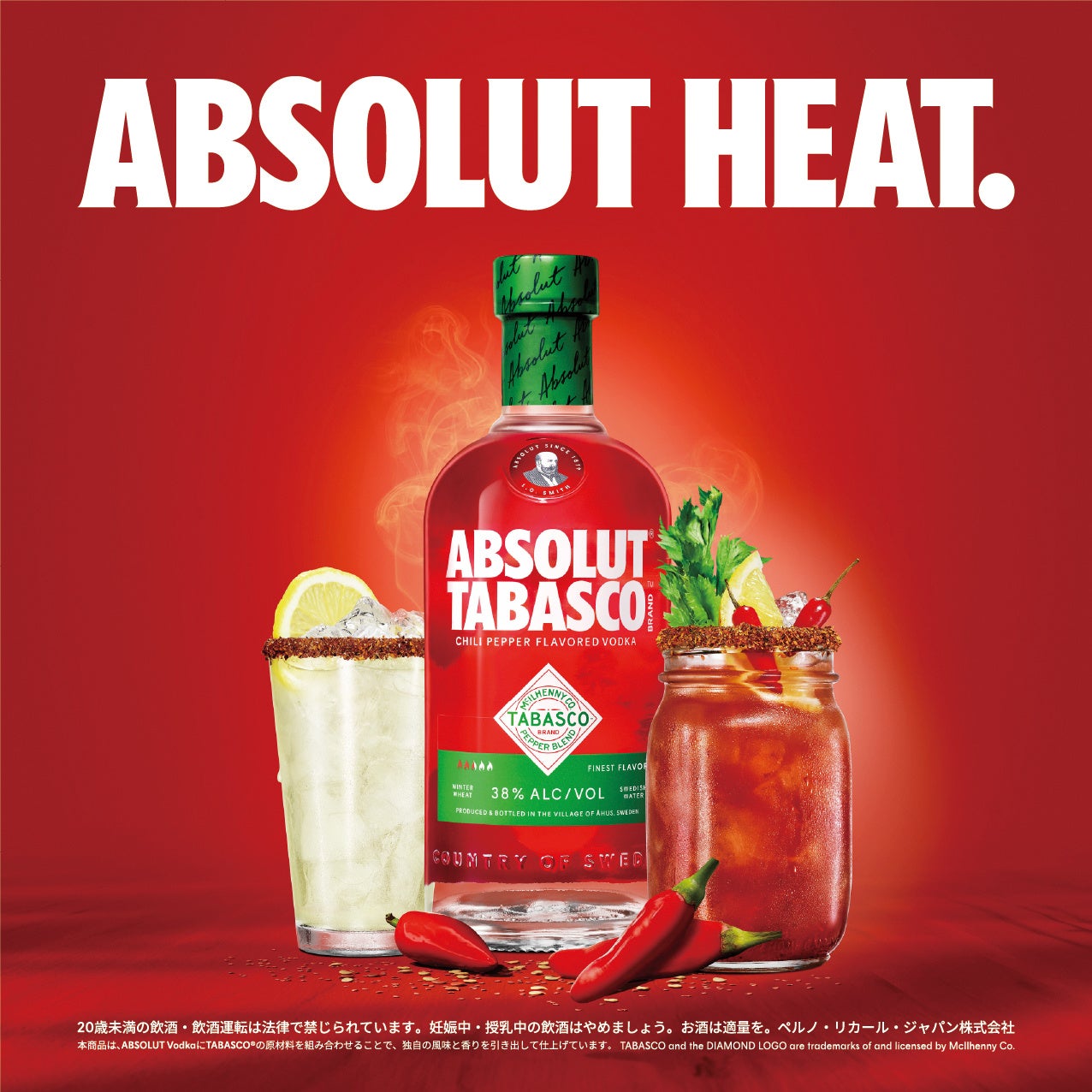 ペルノ・リカール・ジャパン株式会社(本社:東京都文京区 代表取締役社長:ブルーノ カルヴァオ)が展開するスウェーデンが誇るプレミアムウオッカ「ABSOLUT® VODKA(アブソルート ウオッカ)」では、世界195以上の国と地域、25ヵ国の言語で販売されているTABASCO® ブランドとコラボレーションし、刺激的な辛みが際立つスパイシーなフレーバードウオッカ「ABSOLUT® TABASCO™️(アブソルート® タバスコ™️)」を、2026年4月20日(月)より、全国のドン・キホーテ各店、料飲店、Amazon、楽天市場にて新発売(メーカー出荷開始)します。