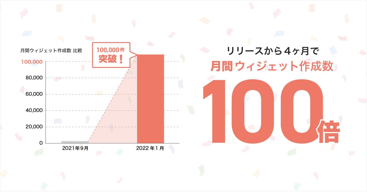 アプリをリリースした2021年9月の月間ウィジェット作成数は約1,000件だったので、リリース時と比較して4ヶ月で約100倍の件数となりました。また、App Storeにおきましても、グラフィック/デザイン・無料カテゴリ内でランキング3位を獲得いたしました(2021年12月末日時点)。