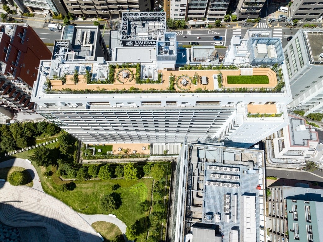 都心に位置する大規模賃貸レジデンスで、豊富な共用スペースの一つとして全長50m超の屋上庭園を計画。都心住宅で自然や緑を享受できる空間を提供することで、新しい発想や出会い、交流、リラックス等、多様なウェルビーイングを実現。屋上映画イベントや入居検討者交流イベントの開催等、住宅共用スペースにおける新たな価値提案をしている。