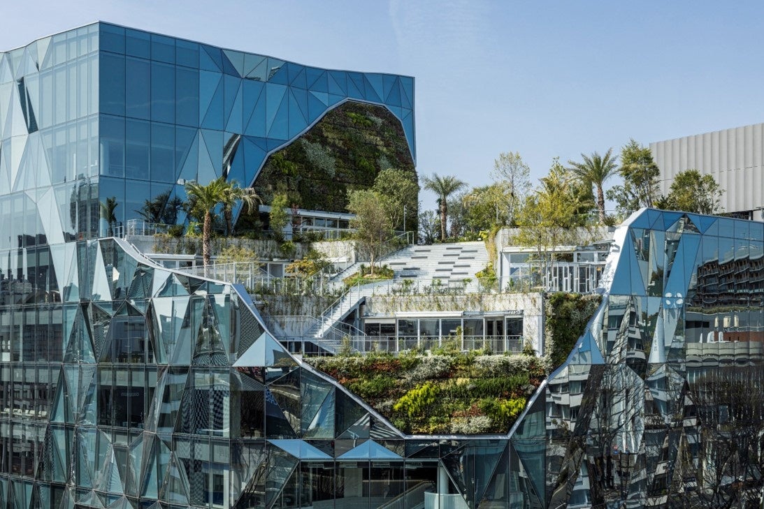 【まちとつながる代官山の新たなランドマーク】暮らす・働く・遊ぶの異なるシーンがシームレスに融合した新たなライフスタイルの拠点施設。緑・環境サステナブルをテーマとしたMAIN棟・TENOHA棟に豊かな緑と駅とまちをつなぐ立体的なパッサージュを織り交ぜ、界隈性と自然を感じながら、代官山のまちとつながる風景を創出した。