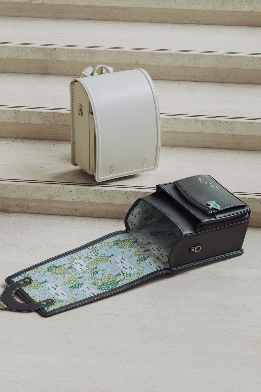 毎年異なるデザインでデザイナーとともにつくりあげる、土屋鞄の「アトリエ」シリーズ。シンプルな外見ながら、ふたを開けると華やかな内装が広がるのが特徴です。“空想する喜びや自由な想像力を大切にしてほしい”と、こどもたちの感性を大切に思う気持ちに共鳴し、「ミナ ペルホネン」とのコラボレーションは4年目を迎えました。今年は新デザイン1柄に加え、過去に販売した2柄を復刻しました。こどもたちの心豊かな未来に思いを馳せて仕立てたランドセルです。