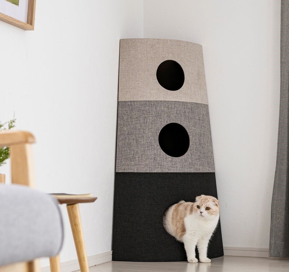 狭く暗いところを好む猫の習性を踏まえた円錐形の形状が特徴で、お部屋に馴染んでインテリアにもなるカインズのオリジナル商品「キャットインテリアタワー NECOTA」から、コーナー型が新登場。部屋の隅に置ける省スペース設計で、デッドスペースになりがちなお部屋の隅を有効活用できます。