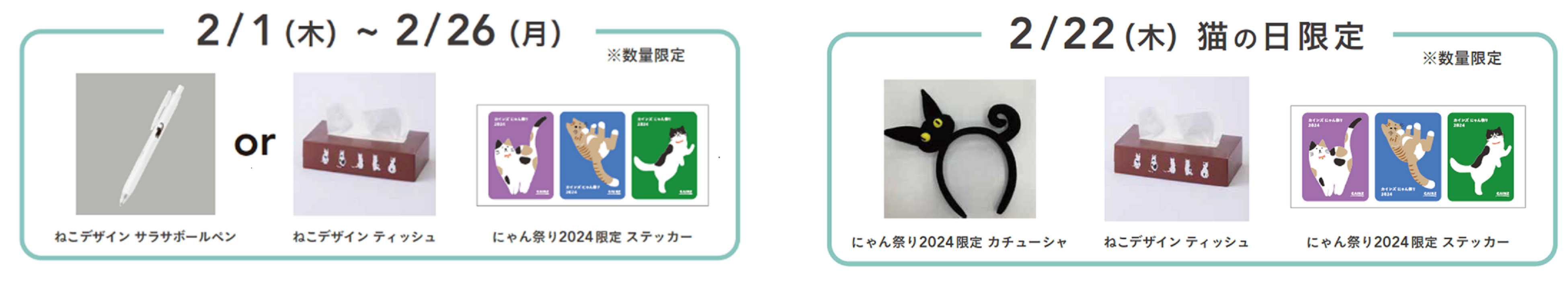 期 間 | 2024年2月1日(木)~4月8日(月) ※ニャンズカードがなくなり次第終了 |