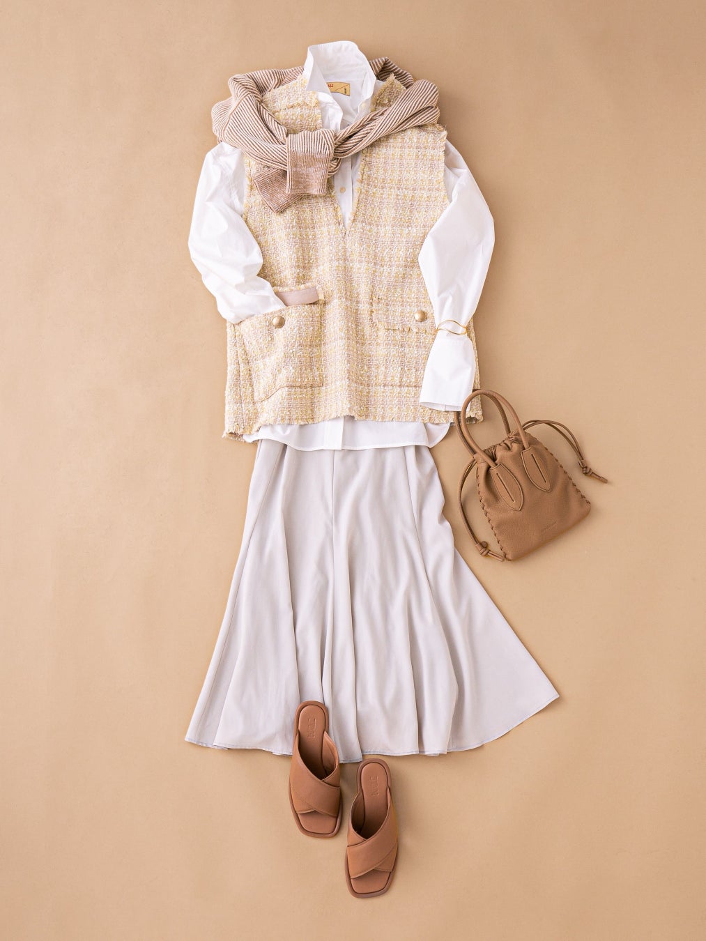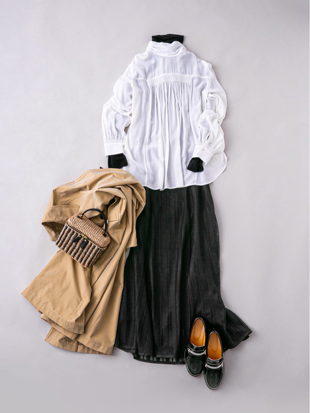 カジュアルにも女性っぽくもなり過ぎず、モードさも兼ね備えたホワイト。季節問わず取り入れやすく、コーデのバランスを整えてくれる。