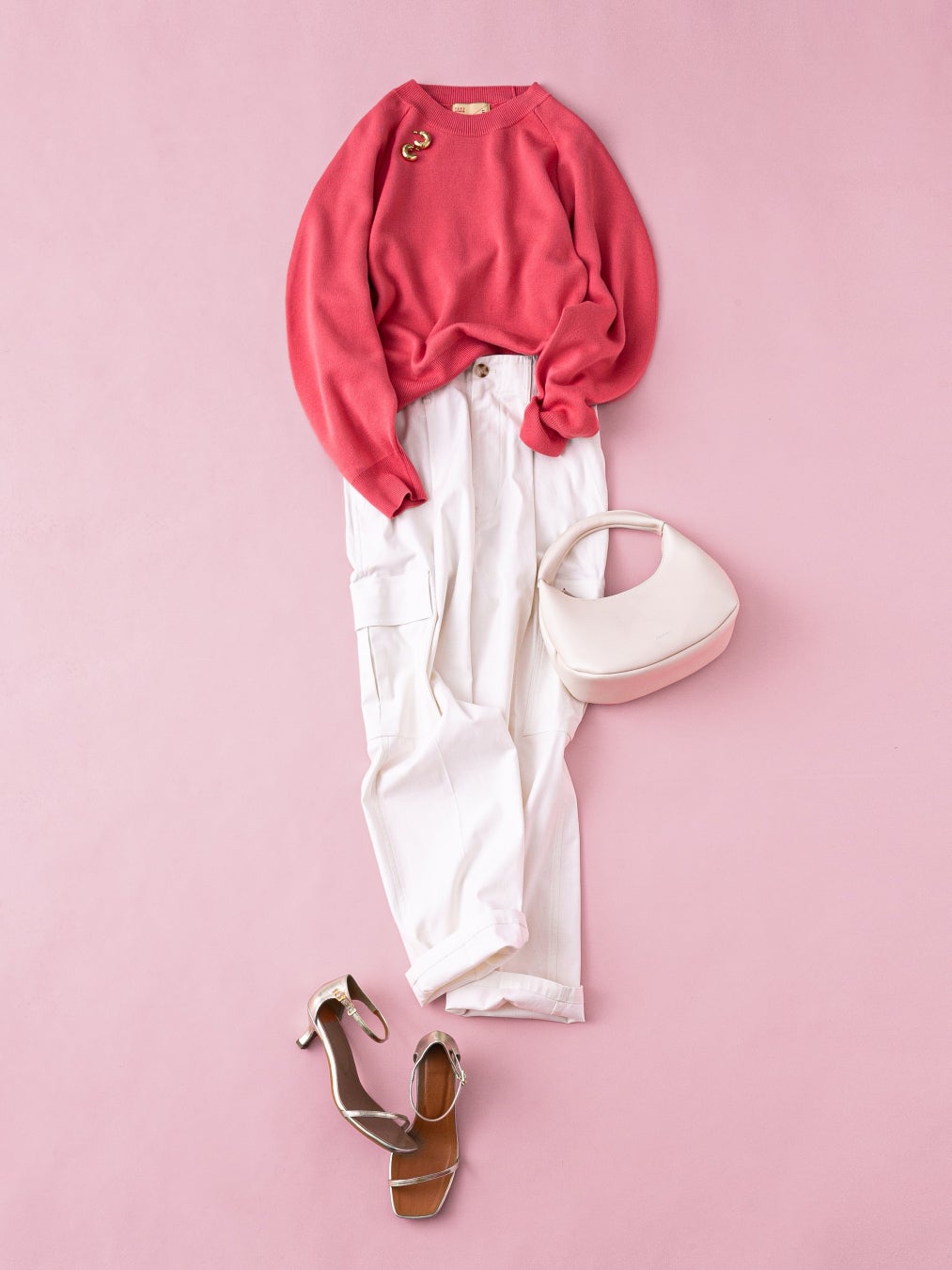 「女性らしさを出したいときはモノトーンにプラスすると◎」