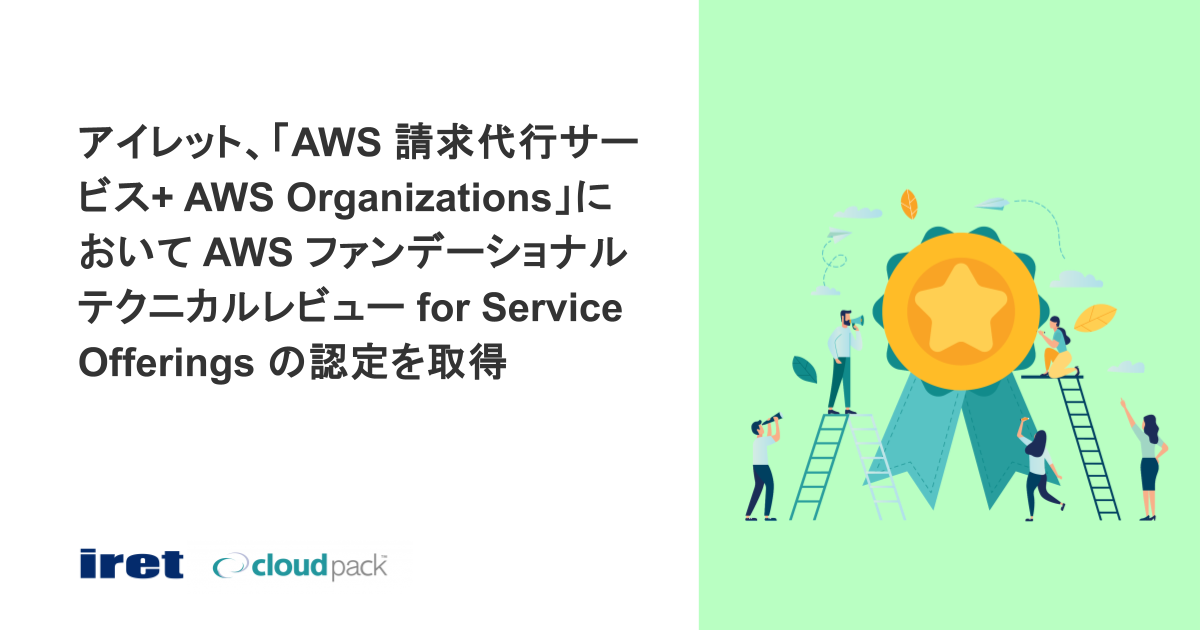 システム・アプリケーションの開発、グラフィック・UI/UX デザイン制作からインフラの構築・運用までをワンストップで提供するアイレット株式会社(本社:東京都港区、代表取締役社長:岩永充正、以下 アイレット)は、当社が提供する「AWS 請求代行サービス+ AWS Organizations」において、アマゾン ウェブ サービス(以下、AWS)のパートナープログラムである AWS ファンデーショナルテクニカルレビュー for Service Offerings の認証を取得したことをお知らせします。本認定の取得により、「AWS 請求代行サービス+ AWS Organizations」が AWS のセキュリティ、信頼性、優れた運用に関する厳格な基準に準拠しているサービスとして証明されました。