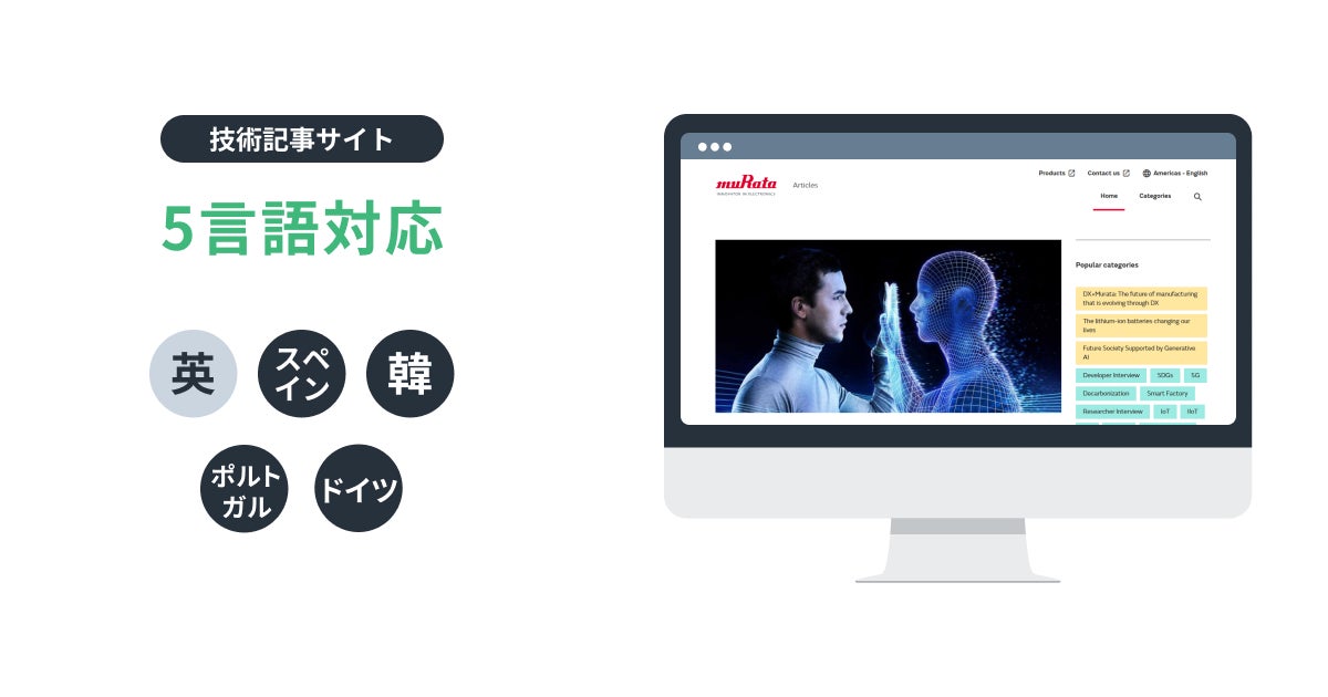 村田製作所の技術記事サイトに導入され、これまで対応していた日本語、英語、中国語(簡)に加え、韓国語、スペイン語、ポルトガル語、ドイツ語に対応しています。