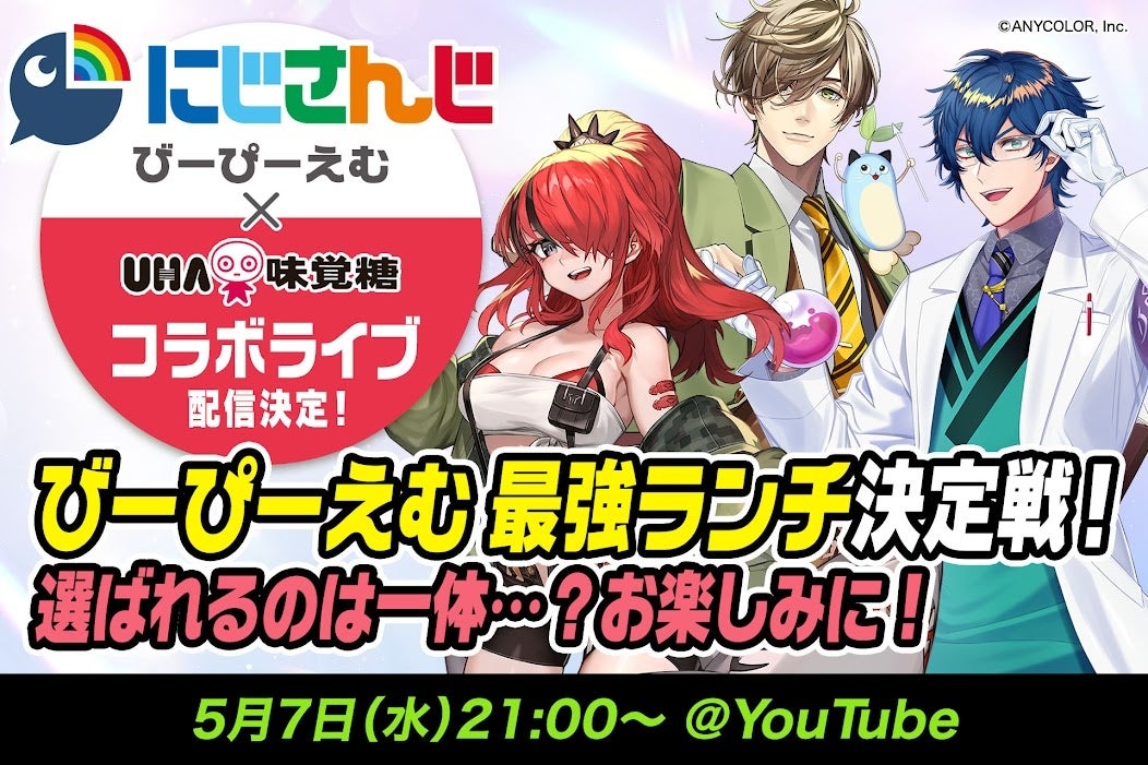 UHA味覚糖株式会社(本社:大阪市中央区、代表取締役:山田泰正)は、ANYCOLOR株式会社(本社︓東京都港区 代表取締役︓田角 陸)が運営するVTuberグループ「にじさんじ」に所属するレイン・パターソンさん、オリバー・エバンスさん、レオス・ヴィンセントさんから成るユニット「びーぴーえむ」と新感覚のごはん系バー「満腹バーシリーズ」のコラボキャンペーンを開催します。