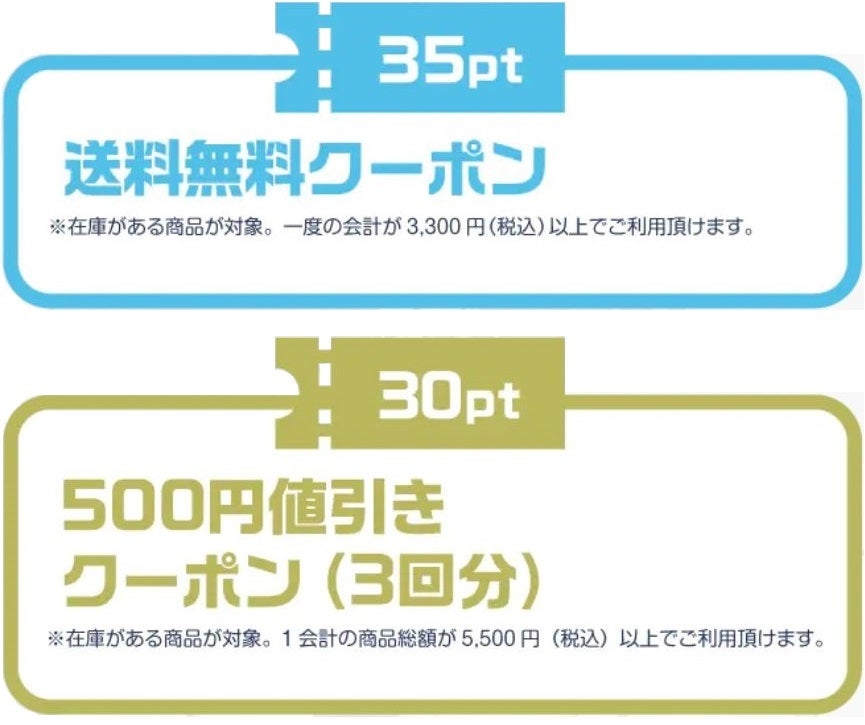・開催期間中に通販にて対象商品を1,100円(税込)お買い上げごとに1ポイント差し上げます。