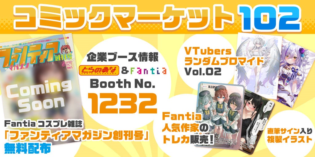 ★コミックマーケット102企業ブースへとらのあな&ファンティアが出展決定。ファンティア人気クリエイターによる「トレーディングカード販売」と「ファンティアマガジン創刊号」の無料配布等を実施。どちらも数量限定です。
