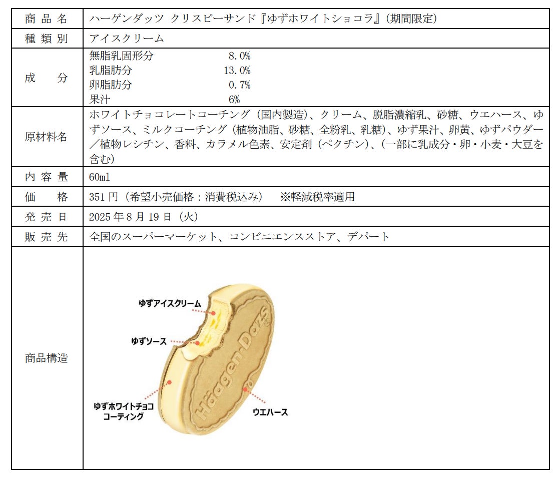 ■【第3弾】ハーゲンダッツ クリスピーサンド『ゆずホワイトショコラ』/8月19日(火)発売