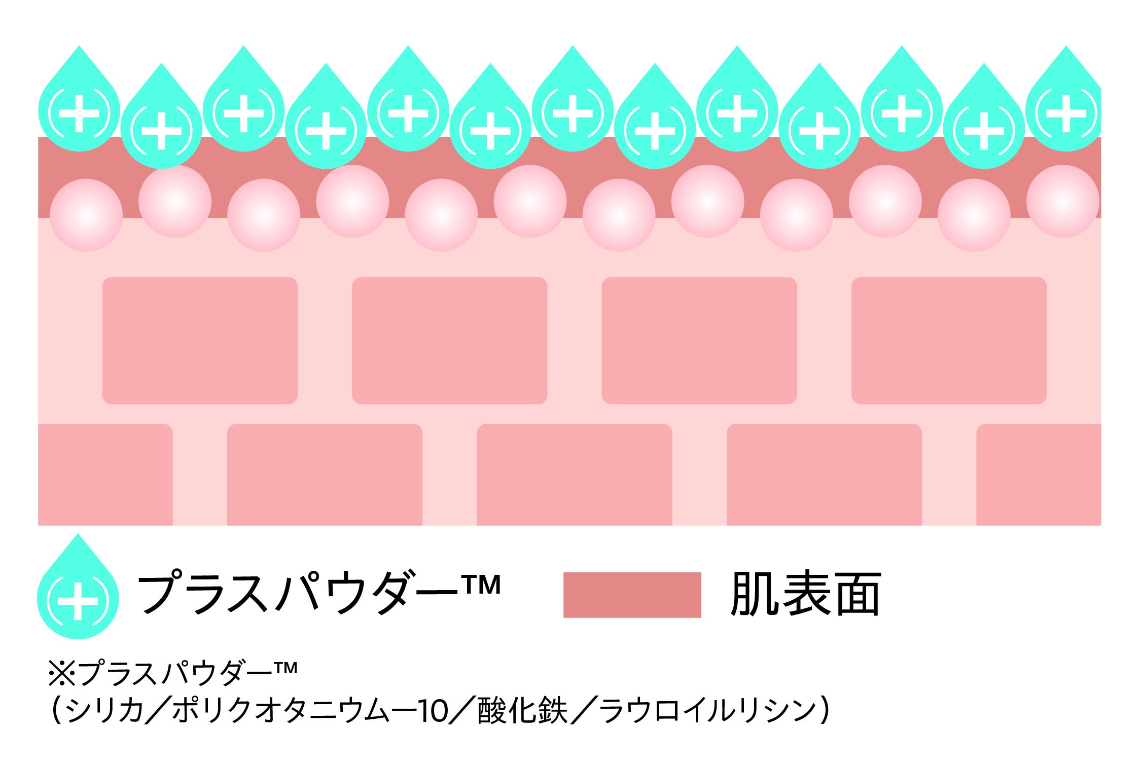 プラスパウダー™が磁石のように肌を瞬間コーティング