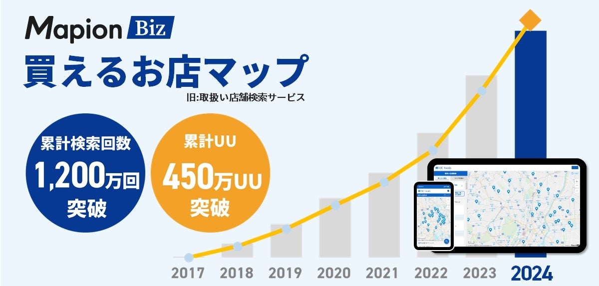 Mapion Biz「買えるお店マップ」、導入企業における累計検索件数1,200万回、累計450万UUを突破