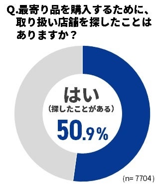 当社調べでは、商品をどこの店舗で購入できるかを検索したことがある生活者は約半数(45.2%)にのぼります(※1)。昨今、生活者は事前に「どこで売っているのか?」を情報収集し、その情報をもとに来店・購買意思を決定することが一般的になってきています。そのような生活者のニーズに伴い、メーカー企業のサイト上でも販売店情報を提供するケースが増えており、「買えるお店マップ」の検索回数、UUともに伸長する結果となりました。