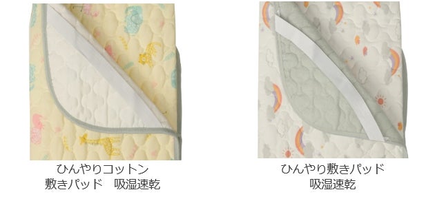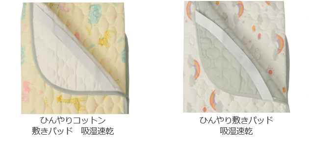 お子さま用の敷きふとんと併せて使用する吸湿・接触冷感素材を用いた敷きパッドです。