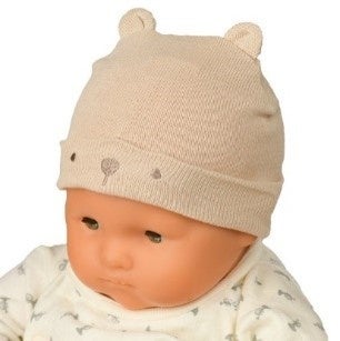 体温調節機能が発達していない赤ちゃんの体温が下がらないように、そして大切な頭を守るためにかぶる新生児用の帽子です。