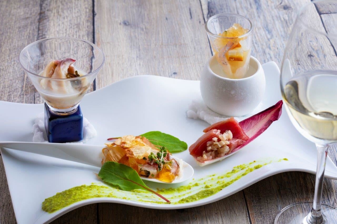 新鮮な魚介をシェフが彩り鮮やかに盛り付け。