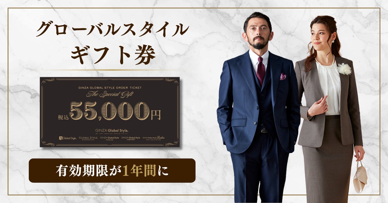 オーダースーツ専門店「グローバルスタイル」を運営するグローバルスタイル株式会社(東京証券取引所 スタンダード市場:7126、本社:大阪市中央区、代表取締役社長 田城弘志)が、グローバルスタイル全店舗(オンラインオーダーは除く)でご利用いただける「ギフト券」の有効期限を変更しました。