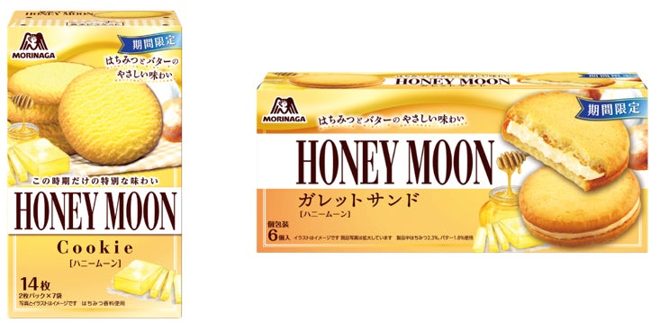 「ムーンライト」は、1960年の発売以来、「森永ビスケット」シリーズの中でも人気のサクサクほどける食感や卵のコクのある味わいが特長のクッキーです。「ハニームーン」「ハニームーンガレットサンド」2品は、「ムーンライト」ブランドで初めてのハニーバター味です。ムーンライトの特長である卵の風味を生かしながら、はちみつのやさしい甘みとバターのコクが楽しめる今だけの特別な味わいです。「ムーンライト」はクッキーの色と形が、夜空に浮かぶ満月に見えることから「ムーンライト」と名付けられました。6月の夏至に近い時期に現れる、特に大きく見える満月が「ハニームーン」と呼ばれることと、はちみつを意味する「ハニー」をかけて「ハニームーン」と名づけました。期間限定の新商品2品を発売することにより、ビスケット市場を盛り上げるとともにお客様に笑顔をお届けしてまいります。