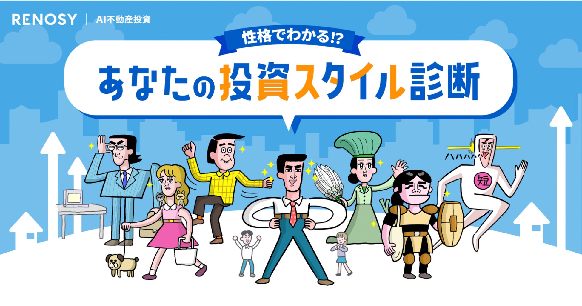 株式会社GA technologies[GAテクノロジーズ](本社:東京都港区、代表取締役 社⻑執行役員 CEO:樋口 龍、証券コード:3491、以下「当社」)が運営するAI不動産投資「RENOSY(リノシー)」は、多様化する投資において、自身に最適な投資を知ることで、資産形成について考えるきっかけとなることを目指し「性格でわかる!?あなたの投資スタイル診断」を開始しました。