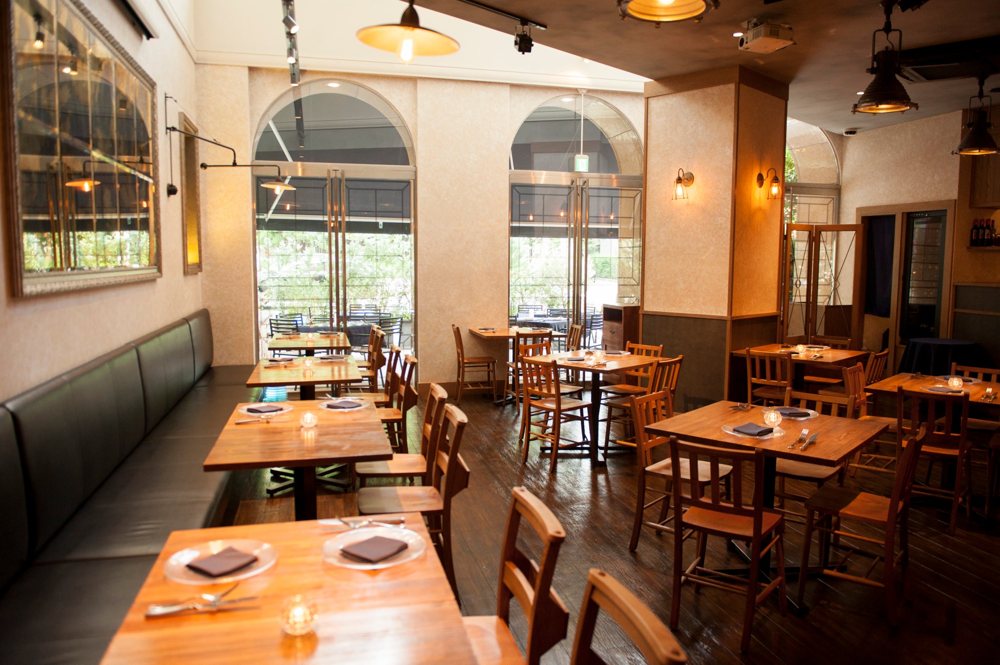 旧山手通り沿いに佇む、目を引く西洋風の建物とネイビーの日よけが特徴の「BISTRO FAVORI 代官山」。店内は、昔のフランス邸宅を彷彿とさせるノスタルジックな空間で、訪れるすべてのゲストを暖かく迎え入れます。