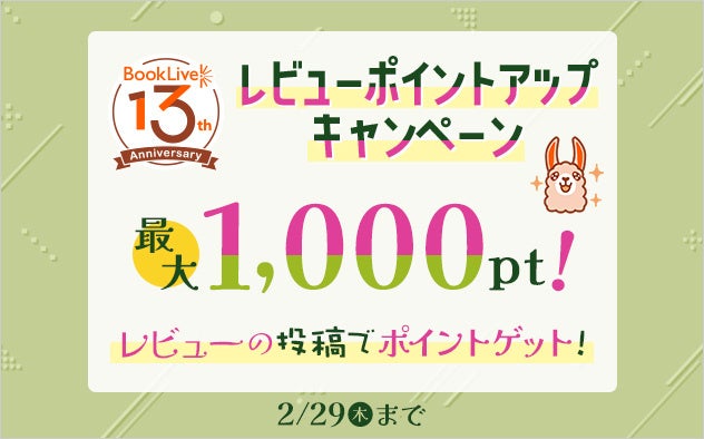 2月の13周年キャンペーン期間中はお得な企画を全部で13個ご用意!この期間だけのキャンペーンとなりますので、ぜひチェックしてブックライブをよりお楽しみください!!