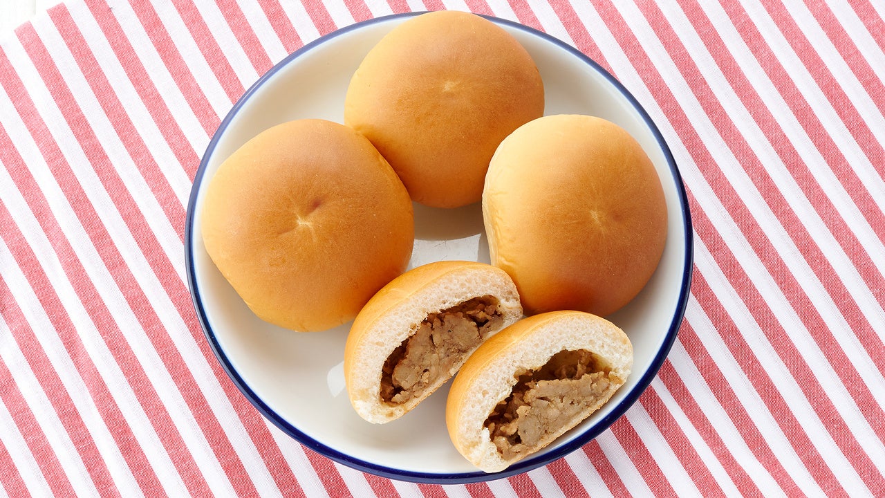 てりやき風味のハンバーグをほぐして、しっとりとしたパンに包みました。朝食や軽食にちょうど良い、食べやすいサイズのミニパン4個入りです。