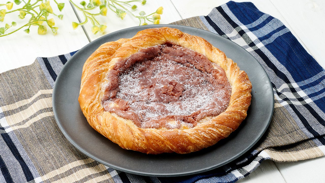 マーガリン入りのこしあんを、渦巻き状のデニッシュパンに絞りました。マーガリンの塩気とあんこの甘さがマッチします。
