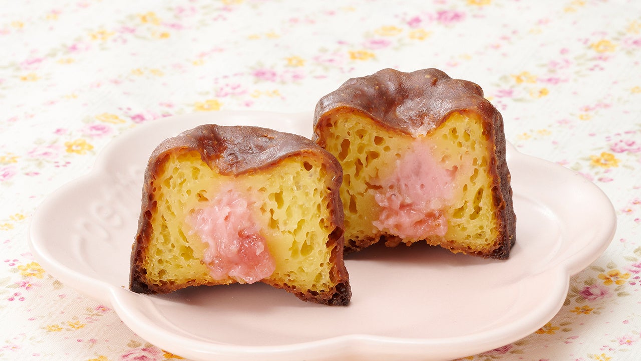 香ばしい皮ともっちり・しっとり食感が特徴の「カヌレ」に、甘酸っぱいいちごクリームを入れました。税込129円と手軽に楽しんでいただけるお手頃価格で発売します。