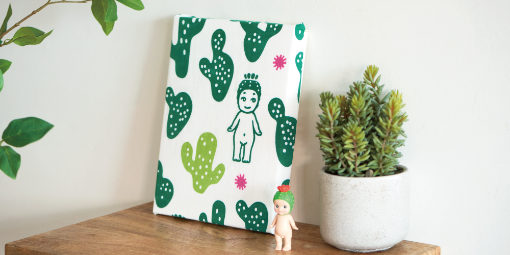 さまざまなパターンを組み合わせたサボテン柄。鮮やかに映える緑色が爽やかな印象を与えます。