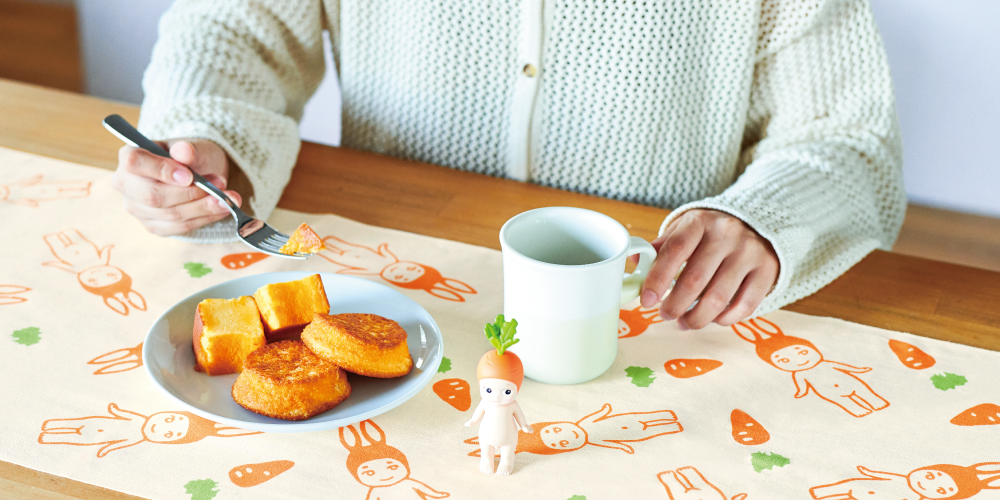 大人気のラビットとニンジンをデザイン。まるで絵本のようなやさしい絵柄に心が癒されます。