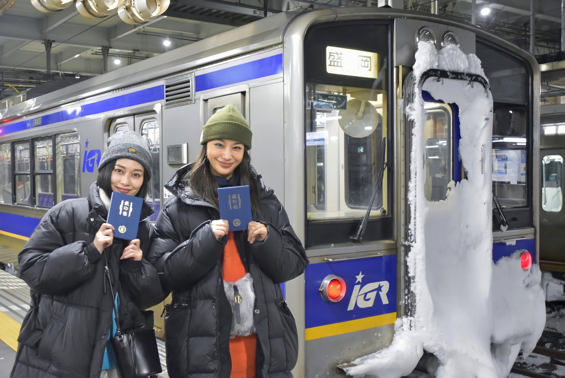 白銀の世界を進む、高橋メアリージュンと佐藤乃莉の仲良し女優コンビ、いわて銀河鉄道二日目の旅路。雪化粧をした岩手山の絶景を楽しみ、奥中山高原駅では雪山でソリ遊びにスキー場であったかランチ。座敷わらしの伝説が伝わる金田一温泉駅で幸運ゲット?