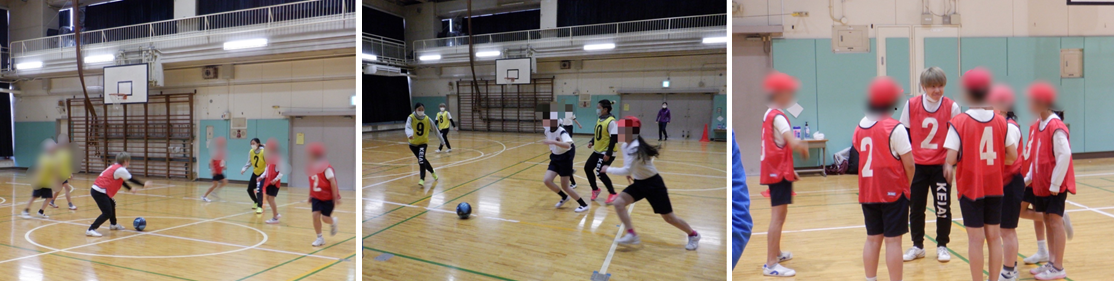 授業では、パスやドリブルの練習の後、4つのゴールを設けるゲームではチームでコミュニケーションを取りながら攻守の練習を行いました。通常の体育の授業とは異なり、普段の会話では得られないコミュニケーションが出来るなど、日本を代表するアスリートとの交流を楽しむ生徒が多くいました。