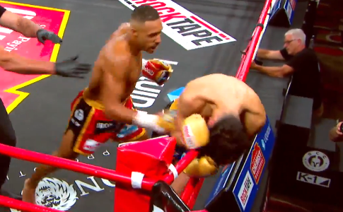 1R、ラーマスはプレスをかけて左右のローキックで先制。モーリスはジャブからボディストレート。ラーマスは強烈なワンツー。モーリスは左から右のパンチのコンビネーション、ヒザ蹴りで応戦。引かないラーマスは右、左の強打でKOを狙う。モーリスの右ローキックで動きが止まるラーマス。だがラーマスは構えをサウスポーにスイッチして対応する。左右ローキックで攻め込むモーリス。諦めないラーマスはパンチを打ち込むも、ガードが下がり始める。フックから右アッパーを決めてモーリスがダウンを奪った。立ち上がったラーマスに、モーリスが左ヒザ蹴りをアゴに入れてKO勝ち。